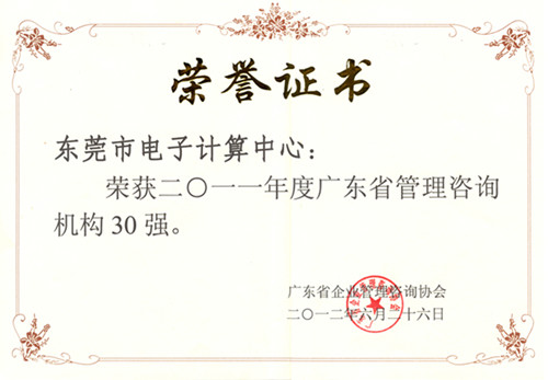 這次榮獲2011年度廣東省管理咨詢機(jī)構(gòu)30強(qiáng),是中心一種的跨步騰飛,我們將以此為新的起點(diǎn),以更熱忱的態(tài)度和更專業(yè)的水平,為東莞市廣大企業(yè)的技術(shù)創(chuàng)新提供更高端的科技服務(wù)。