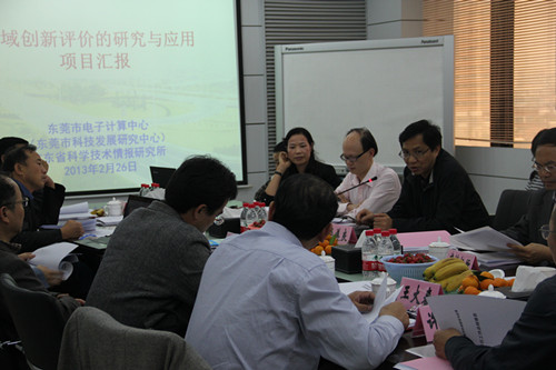 2013年2月26日,由東莞市科技局組織,東莞市科技中介同業(yè)公會(huì)主持,在市科學(xué)館六樓東莞市電子計(jì)算中心會(huì)議室召開(kāi)了由東莞市電子計(jì)算中心(東莞市科技發(fā)展研究中心)和廣東省科學(xué)技術(shù)情報(bào)研究所聯(lián)合研發(fā)完成的“區(qū)域創(chuàng)新評(píng)價(jià)的研究與應(yīng)用”項(xiàng)目科技成果鑒定會(huì)。與會(huì)人員包括市科技局吳美良副局長(zhǎng)、專利成果科黃偉文科長(zhǎng)、省科學(xué)情報(bào)所曾祥效所長(zhǎng)及東莞市電子計(jì)算中心王潔主任等。鑒定專家委員會(huì)由來(lái)自省統(tǒng)計(jì)局、中山大學(xué)、暨南大學(xué)、省信息中心及市電子政務(wù)辦等高校、科研機(jī)構(gòu)和相關(guān)單位的專家組成。